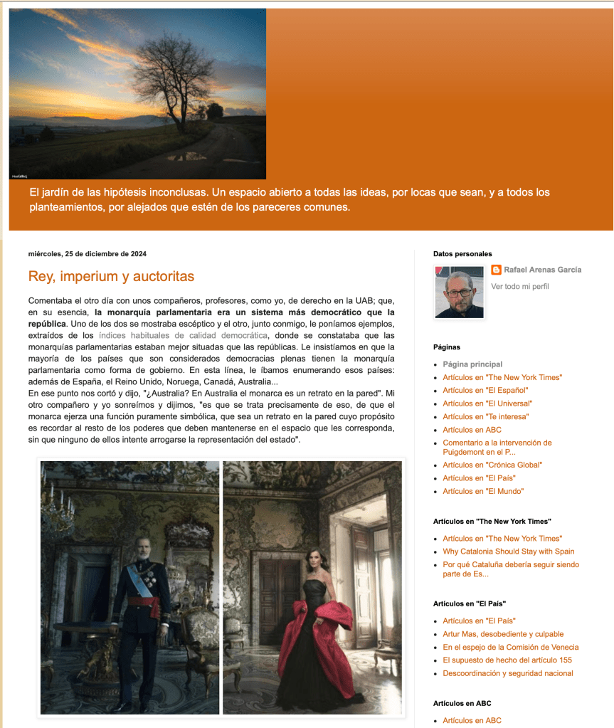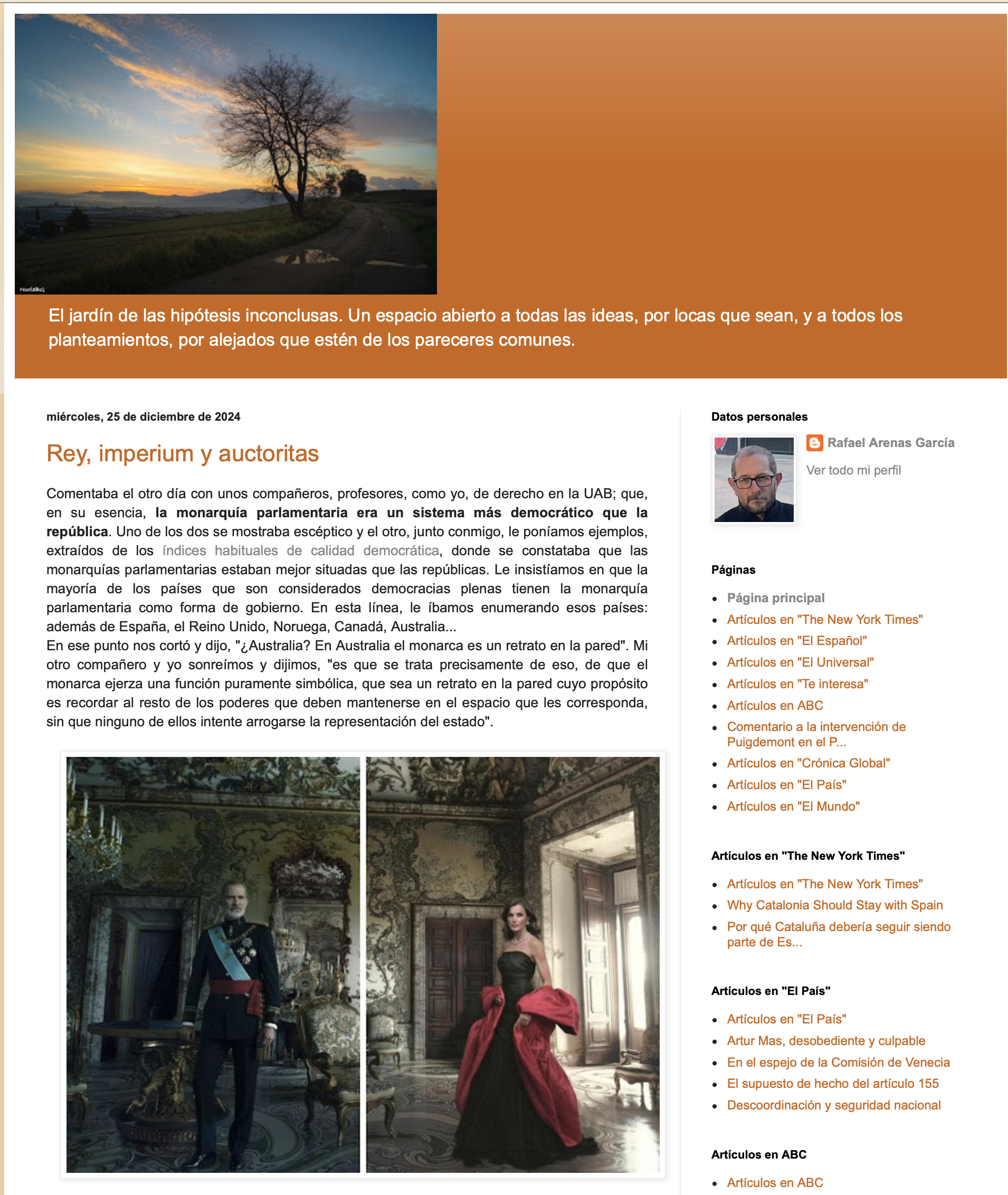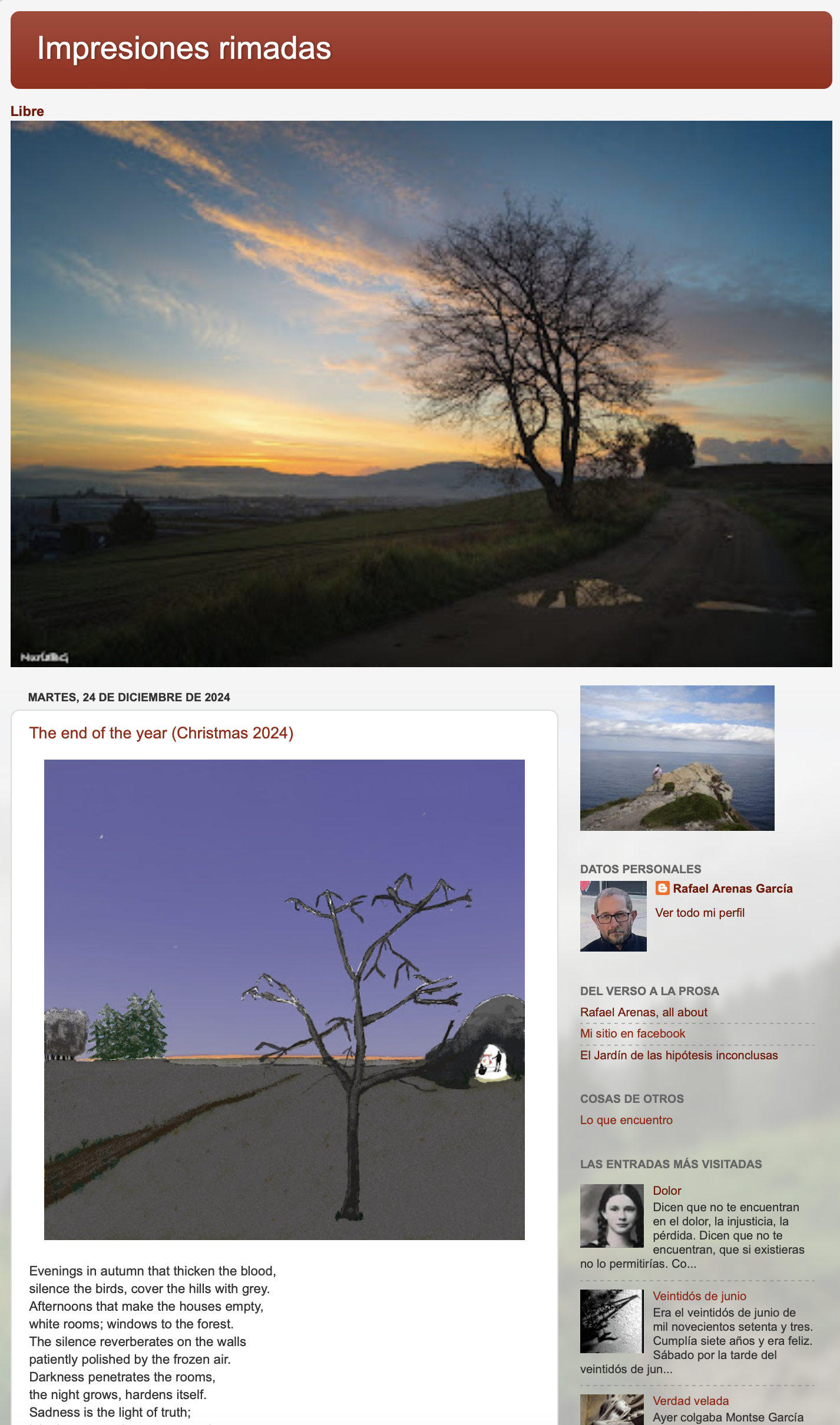 Derecho, poesía, relatos, política… en este blog aparecen materiales que ya han sido publicados en otros sitios. Casi todas provienen de «El jardín de las hipótesis inconclusas» y de «Impresiones Rimadas«; aunque también pueden encontrarse entradas de otros blogs. Eso sí, salvo que se diga lo contrario todas han sido escritas por Rafael Arenas García.
