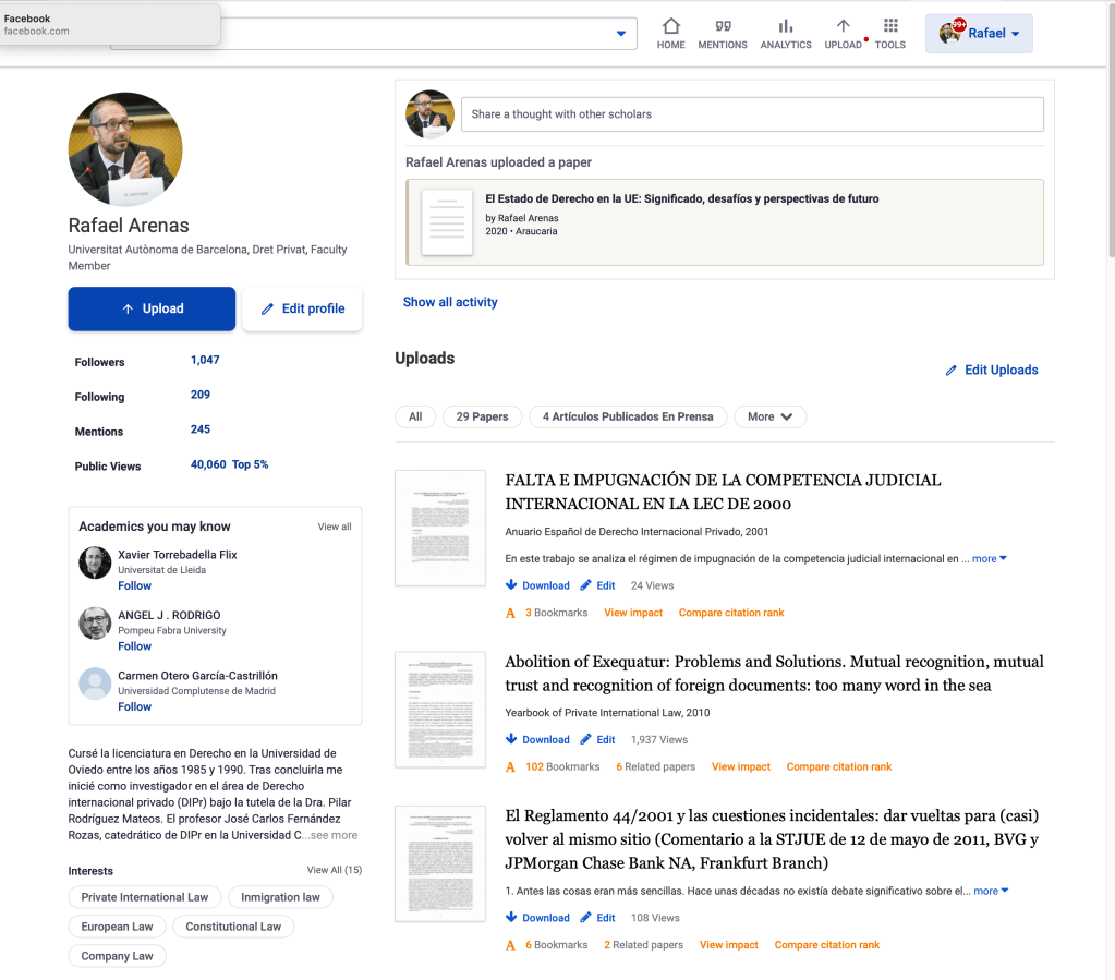 En el bloque de Derecho se recogen algunas publicaciones en materia jurídica, desde mi primera publicación hasta algunas de las más recientes, así como enlaces a la página de Academia donde pueden encontrarse casi todas ellas.