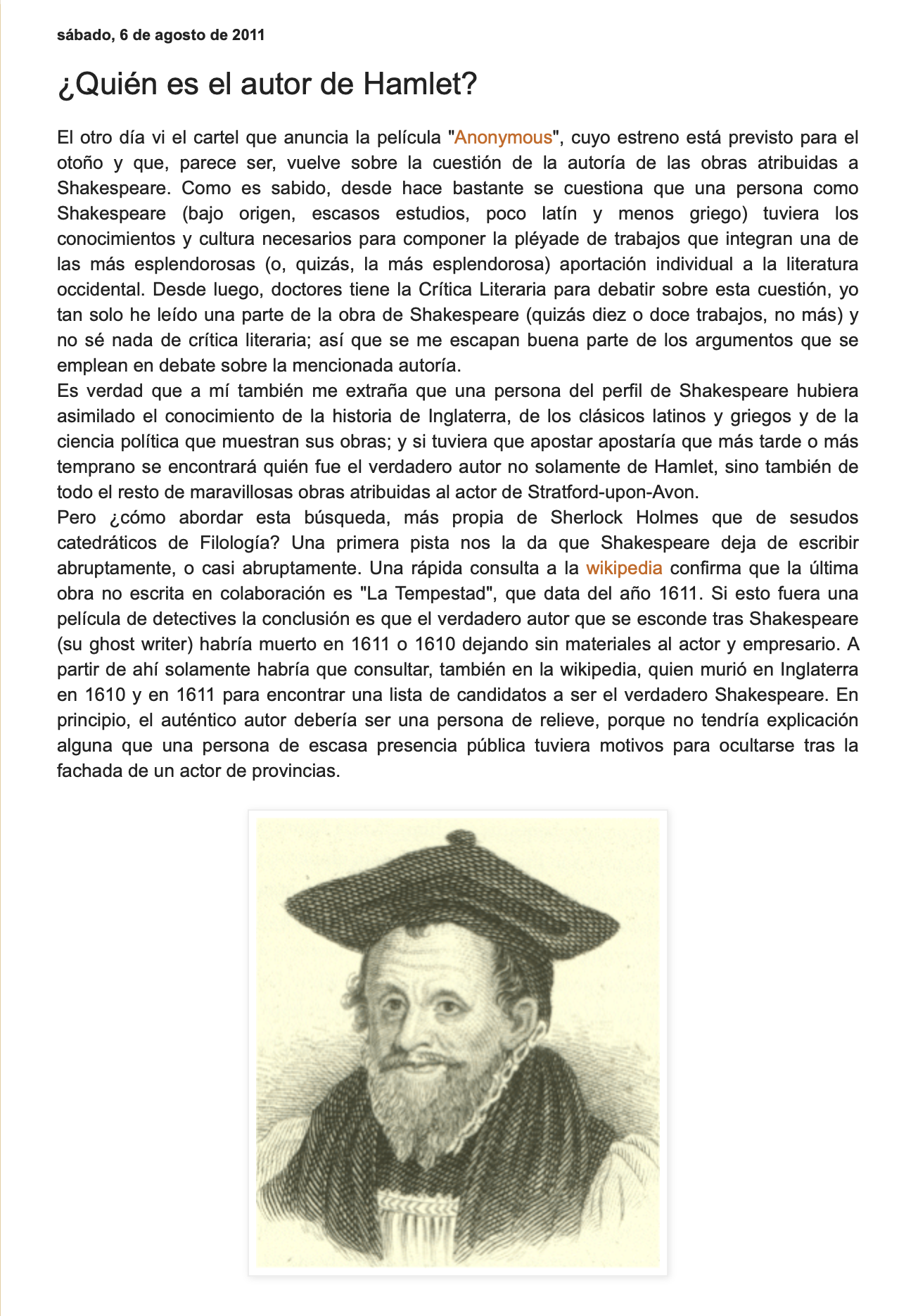 En este enlace, además, pueden consultarse todas las entradas del blog; entradas en las que, normalmente, se da cuenta de la creación de alguna nueva página o se comenta algún tema de actualidad.