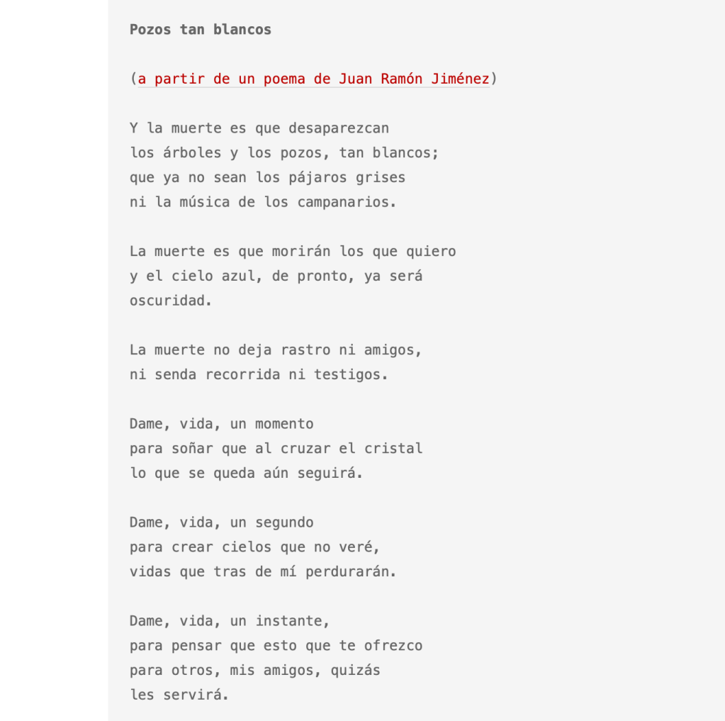 En la sección de poesía, también hay lo que podría ser el borrador de un poemario, «La soledad del Neandertal«, dividido en cinco partes (Uno, Dos, Tres, Cuatro y Cinco).