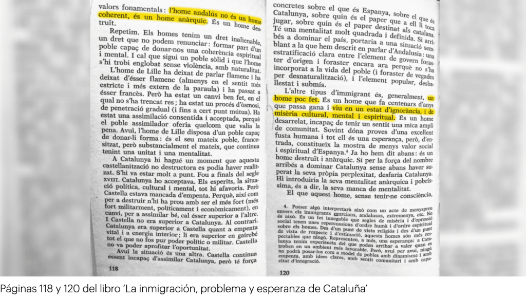 «El hombre andalúz no es un hombre coherente, es un hombre anárquico. Es un hombre destruido. (…) El otro tipo de inmigrante es, generalmente, un hombre poco hecho. Es un hombre que hace centenares de años que pasa hambre y vive en un estado de ignorancia y de miseria cultural, mental y espiritual».