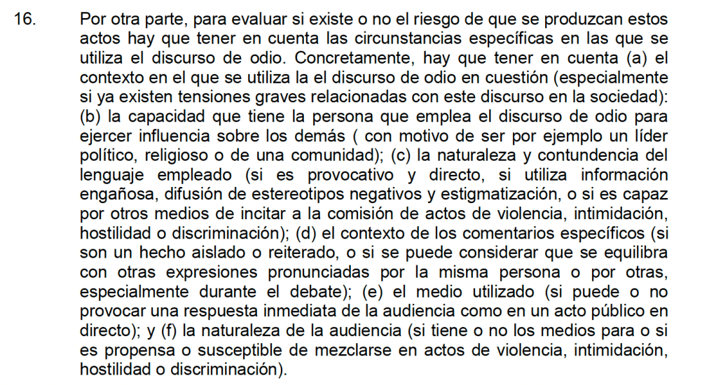 El discurso de odio es un concepto complejo, que ha de examinarse con especial cuidado cuando es el propio poder público el que ampara —o promueve— la deslegitimación de un colectivo por motivos identitarios.