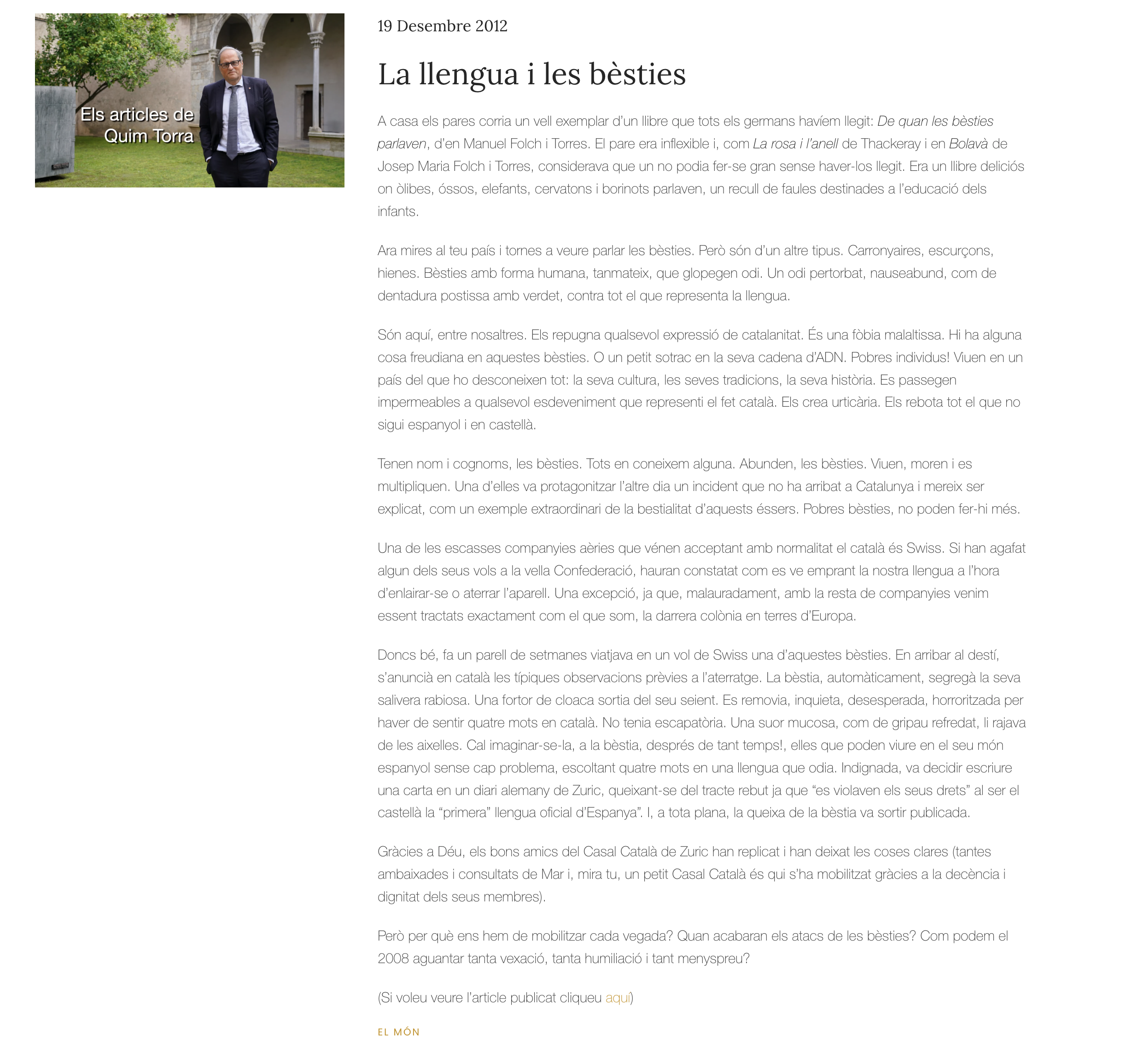 And the second, more widely known, in which he describes as beasts those who do not share his views on the Catalan language.