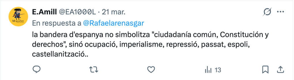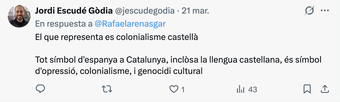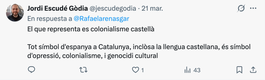 This connects with a discourse that insists on the “colonization” of Catalonia and on labeling as “colonists” those who do not share nationalist positions.