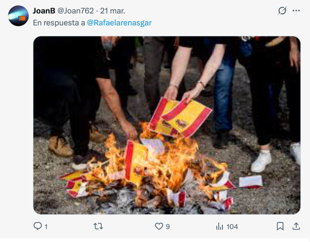 Along the same lines, there is a clear disparity in how groups are treated: the group identified with Spain and Spanish identity is treated differently from others. Offensive messages about Spain on social media, or the burning of Spanish flags, are regarded as expressions of free speech; whereas equivalent actions directed at other groups are investigated as hate crimes.