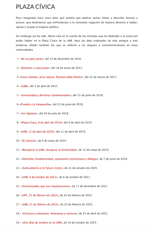 Finally, limitations of rights can also be observed affecting non-nationalist students at Catalan public universities. In some cases, it has been judicially declared that academic authorities violated students’ fundamental rights by restricting their activities on campus for ideological reasons; in others, harassment suffered on university campuses at the hands of nationalist groups has led to criminal convictions. I have addressed these issues in some detail here.