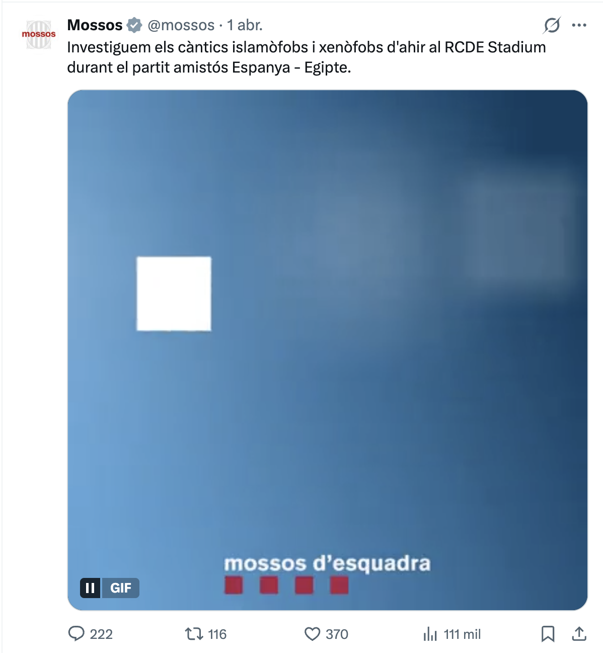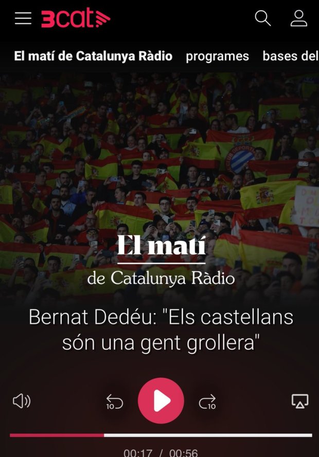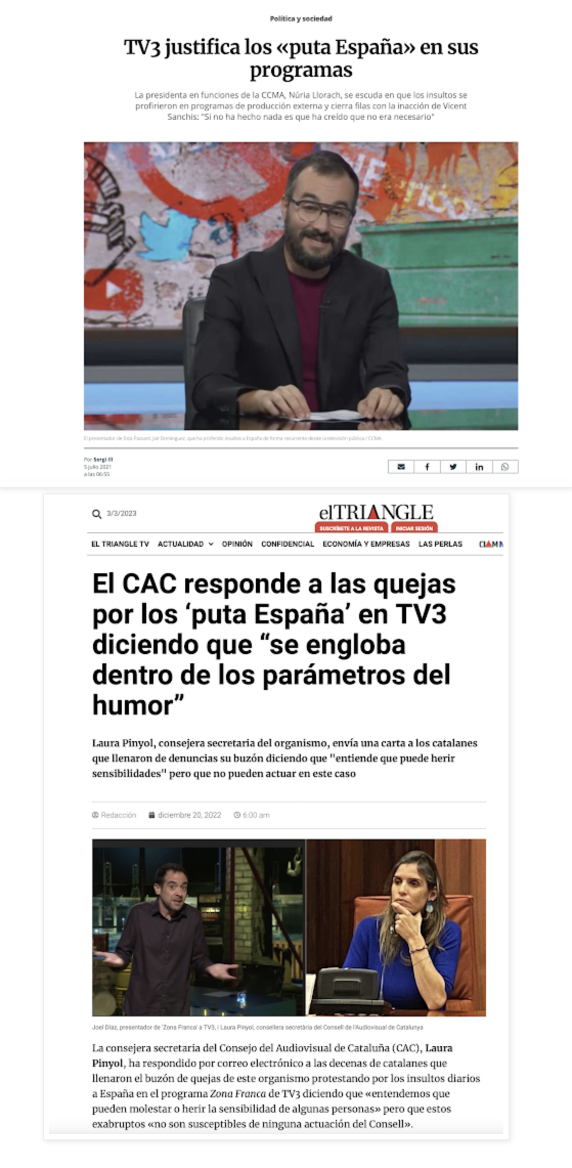 In light of this reality, it is striking that not only anonymous individuals or those without public relevance take part in this discourse of hate, but that it is also reinforced from within public institutions. In this regard, it is noteworthy that, on the website of Catalonia’s public radio, the following message could be seen just a few days ago: