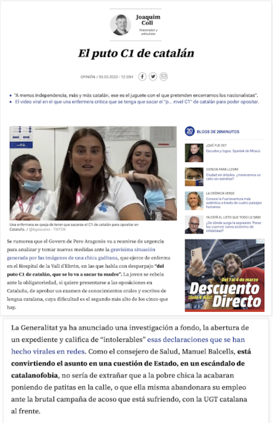 Criticism of the requirement of a C1 level in public healthcare recruitment examinations led to the initiation of disciplinary proceedings against a nurse of Andalusian origin.