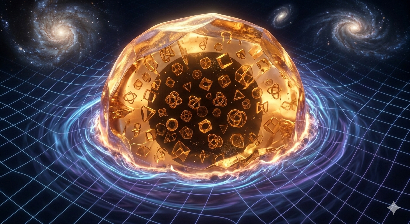 Obviously, this is purely speculative; but could it be that massive particles are «holes» in spacetime? A kind of bubble that travels as a vibration through space (photons) and through both space and time (massive particles). Seen from this perspective, it would explain why particles are «elementary.» It does not depend on them being very small, but on the fact that, being an anomaly in the structure of spacetime, their interior is, in a literal sense, nothingness. There is no possibility of division because it does not, and cannot, have any internal structure. From there, the higher density in the vicinity of a gravitational mass could be understood either as spacetime’s attempt to fill the hole or as a result of the spacetime that has been «displaced» from the particle; or perhaps a combination of both. In any case, this higher density—which manifests as the slowing of time—would be linked to the presence of massive particles and objects.