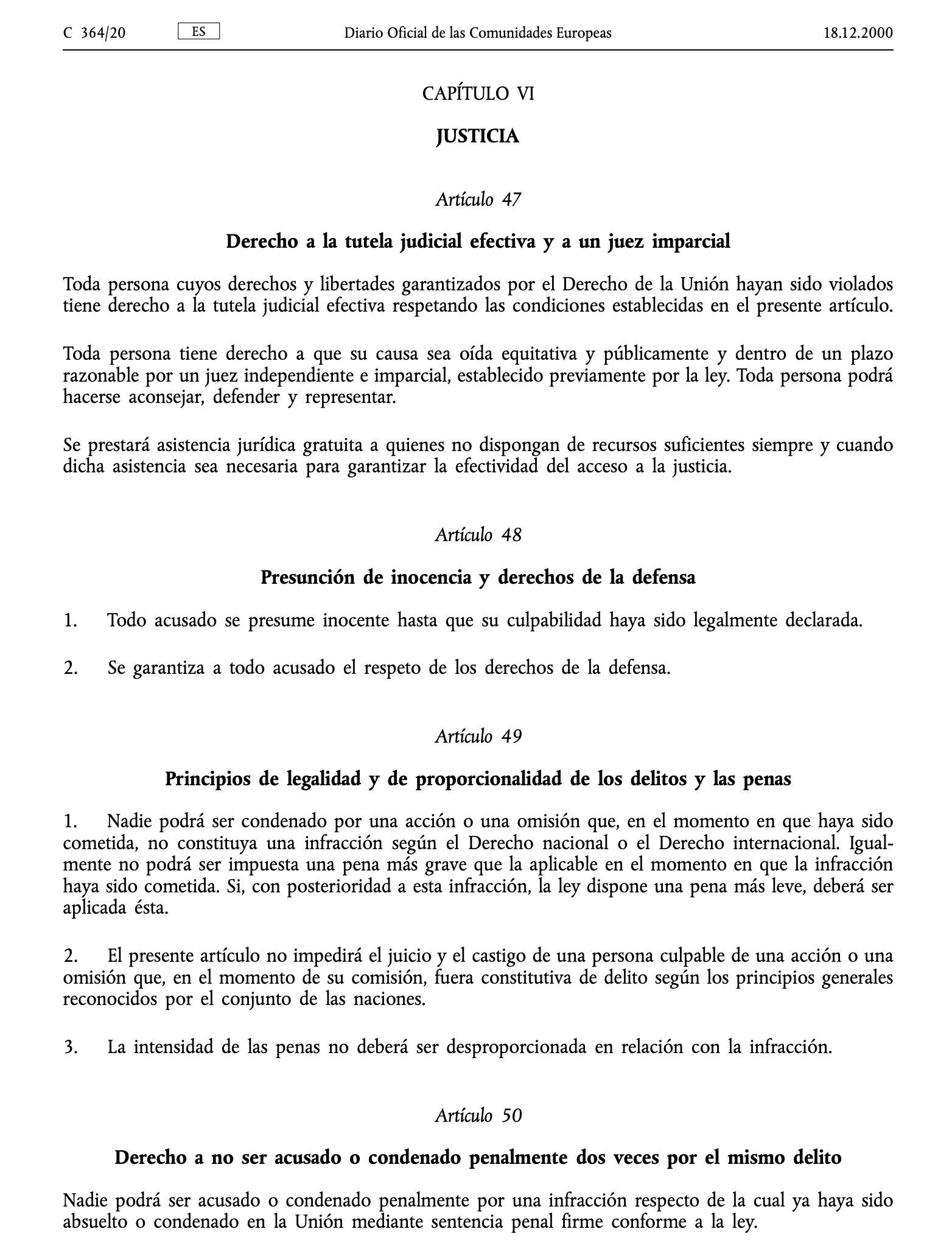 Al derecho de la UE no le es indiferente la organización judicial en los estados miembros. El art. 2 del Tratado de la Unión Europea (TUE) declara que la Unión se fundamenta en una serie de valores que incluyen el Estado de Derecho. Aunque el TUE no define este concepto, «Estado de Derecho», existe consenso en que no puede hablarse de él si no existe un sistema de justicia independiente. El art. 19 del TUE, en la misma línea, impone a los estados miembros establecer las vías de recurso necesarias para garantizar la tutela judicial efectiva en los ámbitos cubiertos por el derecho de la Unión. De esta forma, los órganos jurisdiccionales nacionales se integran en el sistema judicial europeo, debiendo cumplir con los requisitos del derecho de la UE ya que quienes en primer lugar han de aplicar la normativa europea son esos tribunales nacionales, como consecuencia de la primacía y el efecto directo del derecho de la UE. El art. 47 de la Carta de Derechos Fundamentales concreta aún más estas exigencias en relación al sistema judicial, indicando que los jueces han de ser independientes, imparciales, establecidos previamente por la ley (art. 47 de la Carta). Además, se incluyen previsiones sobre la presunción de inocencia, los derechos de defensa y los principios de legalidad y proporcionalidad; así como el non bis in idem.