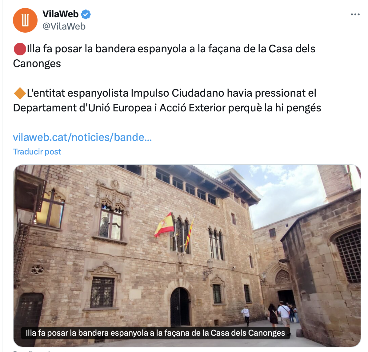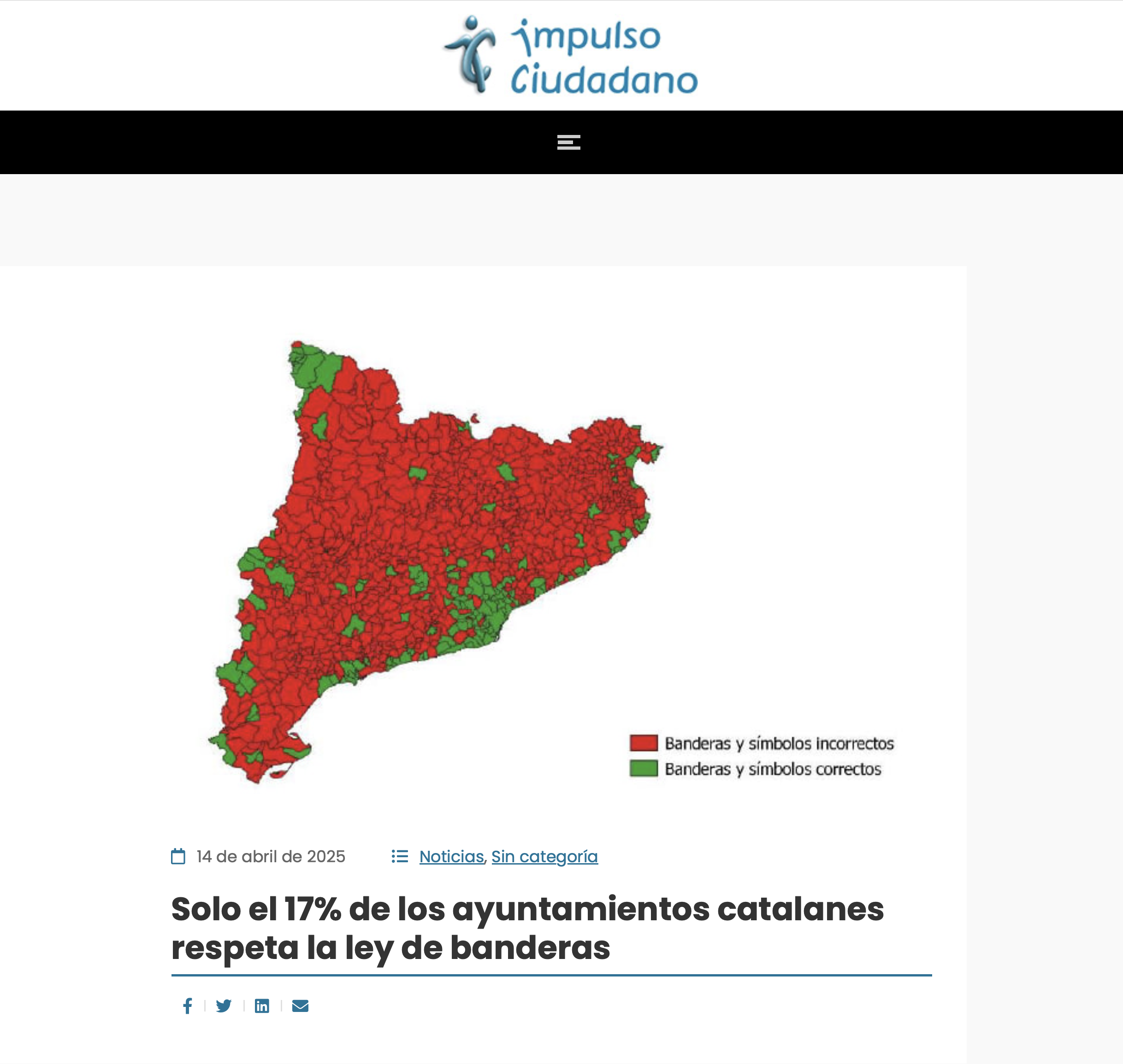 Y esta vulneración, además, carece de respuesta por parte del Estado. La Delegación del Gobierno no plantea recursos para exigir el cumplimiento de la ley, y quien ha de abordar esta tarea es una entidad como Impulso Ciudadano que ha presentado más de 200 requerimientos a ayuntamientos incumplidores e iniciado 17 recursos contencioso-administrativos para exigir el cumplimiento de la ley. Además, vela por la presencia de la bandera española en otros edificios públicos. Recientemente, gracias al recurso planteado por Impulso Ciudadano, la bandera española ha sido colocada en la Casa dels Canonges, edificio público perteneciente a la Generalitat y sede del Departamento de Acción Exterior de la Generalitat, lo que ha provocado una cierta convulsión entre los nacionalistas.