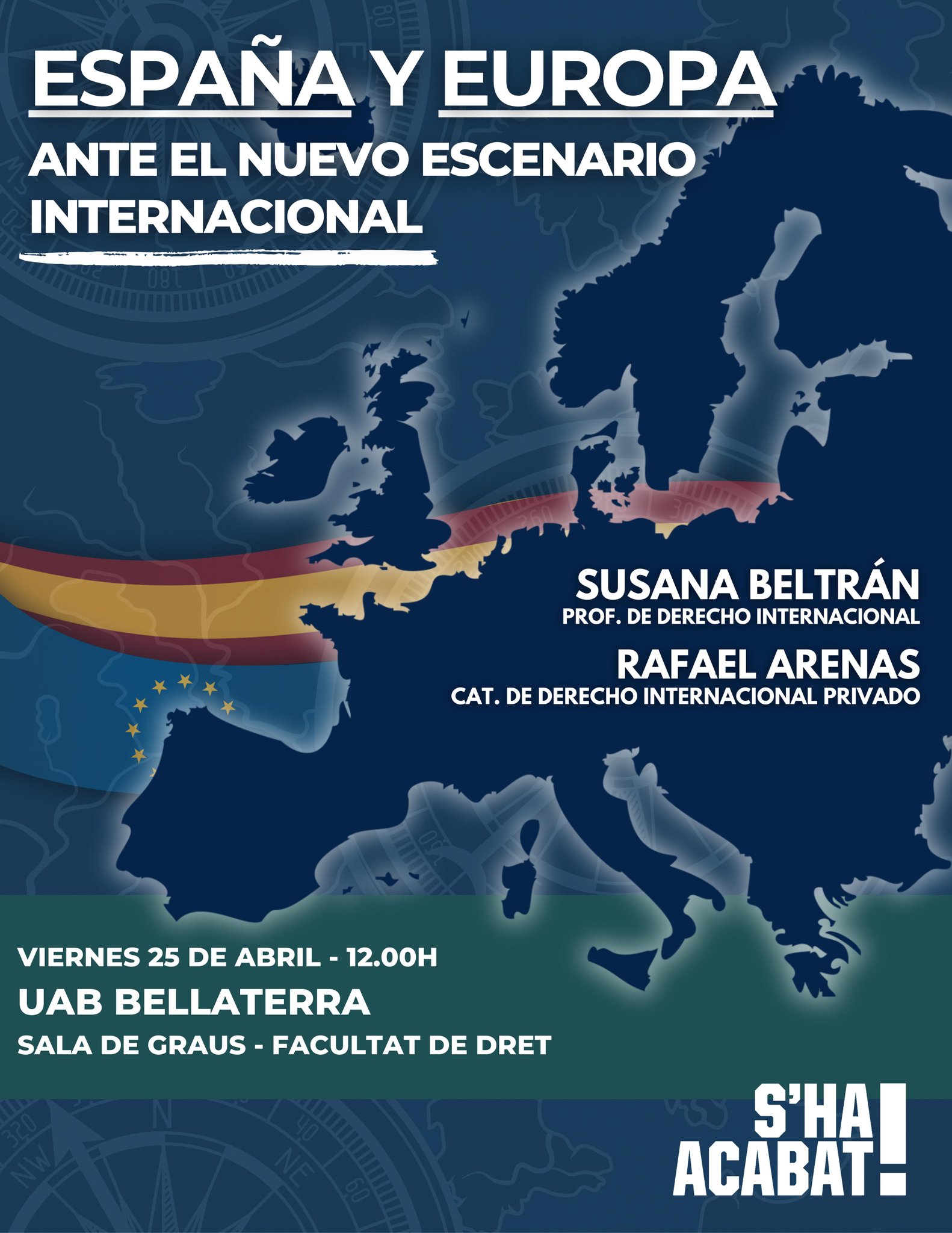 Hace varias semanas, desde S’ha Acabat! me pidieron que participara en un acto que se celebraría en la Facultad de Derecho de la UAB sobre España y Europa ante el nuevo escenario internacional. Participaría también en él Susana Beltrán, profesora de Derecho internacional público.