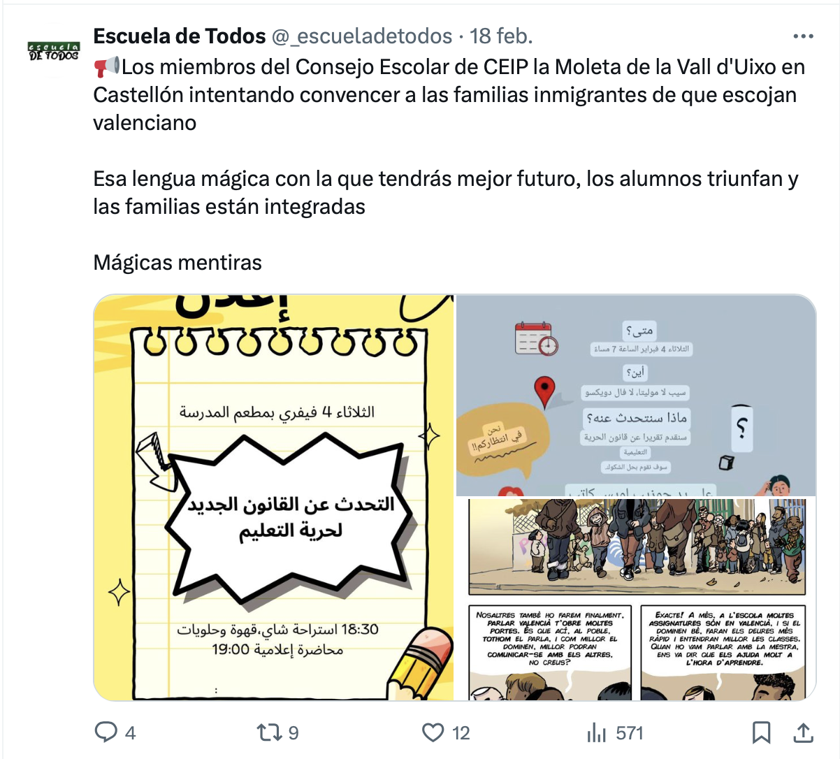 Es lamentable que hayamos llegado a esta situación; pero pediría que esta circunstancia no afecte a las familias que han de elegir lengua en los próximos días. Lo más importante en este tema es la educación de los niños y, como he intentado mostrar, una presencia significativa de su lengua materna es aconsejable.