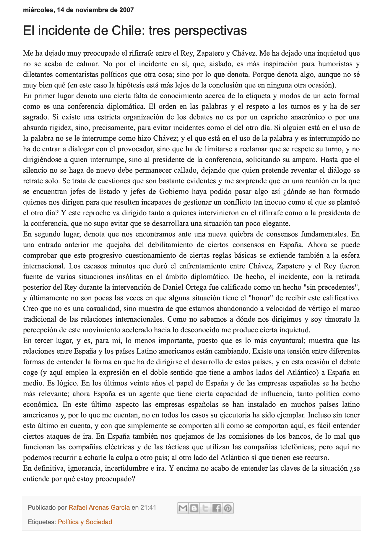 Una cosa es, como comentaba antes, la Realpolitik y otra que no existan ciertos principios claros en el derecho internacional, principios que, con demasiada frecuencia, se saltan, pero que es más raro ver vilipendiados de manera expresa.