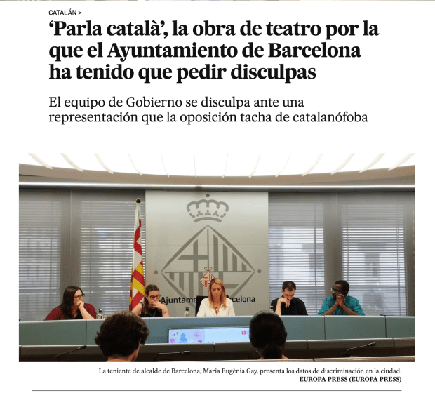 En los últimos días se ha producido un cierto revuelo en torno a una obra de teatro, representada en Barcelona, y que tiene como tema la imposición del estudio y del uso del catalán, tal y como es percibida por algunas personas que llegan a Cataluña sin conocer la lengua. La producción es de un grupo de mujeres de origen latinoamericano, ha sido tachada de catalanófoba y, parece ser, el ayuntamiento de Barcelona ha pedido disculpas (la representación se había realizado en un espacio municipal, he creído entender).