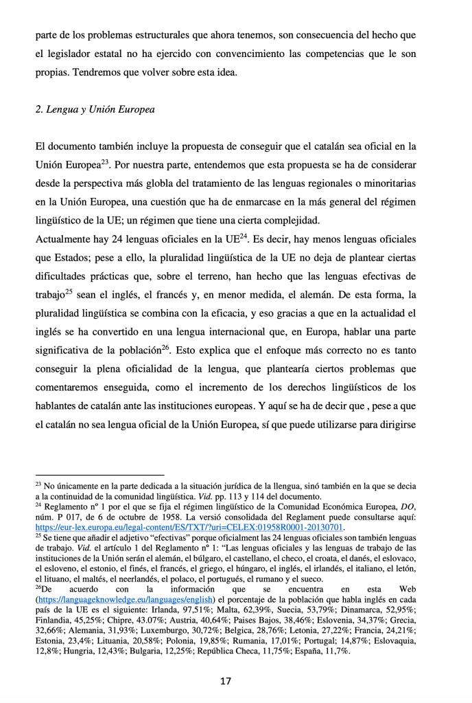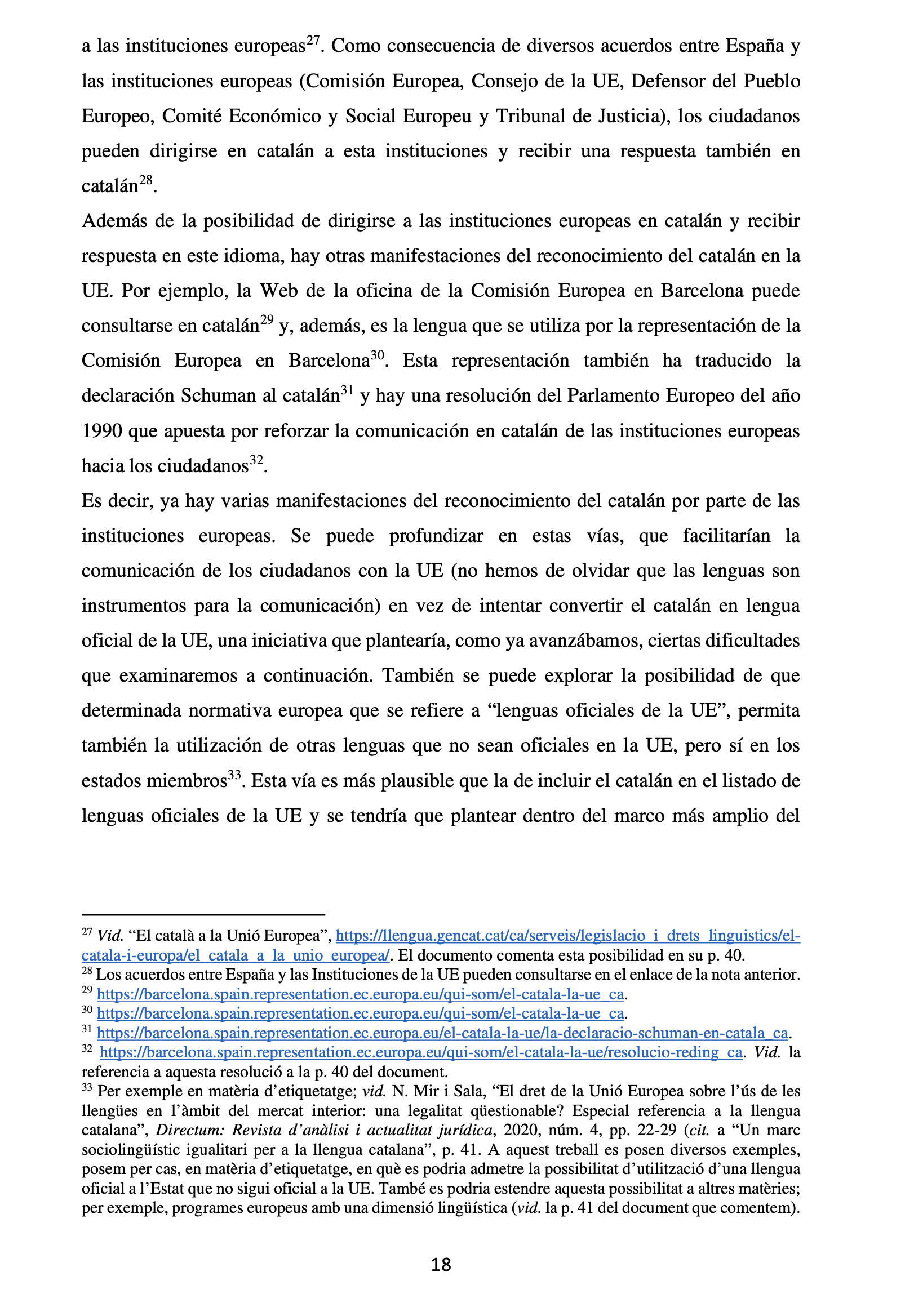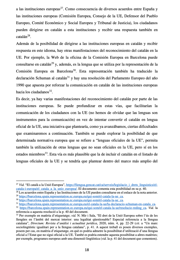 2- Desde hace años, los ciudadanos catalanes disponen de la posibilidad de dirigirse a las instituciones europeas en catalán y también se ha avanzado en la traducción al catalán de textos europeos. Así se explicaba en el informe de Impulso Ciudadano sobre el Pacto Nacional por la Lengua hace varios años.