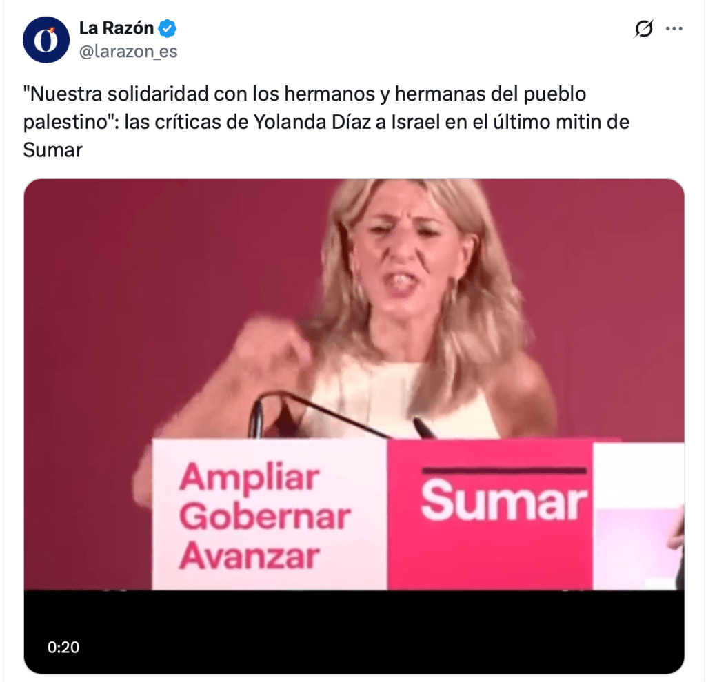 Además de esta instrumentalización, existe otra dimensión que ha de ser considerada. Con toda la complejidad que tiene el conflicto de Oriente Medio, es posible identificar partes en él. Simplificando mucho, por un lado Israel y por otra los palestinos. En España hay quien se adscribe sin matices a la causa palestina, son «los suyos» y defienden sus avances como propios y lamentan cualquier retroceso que padezcan. Las manifestaciones que siguieron inmediatamente a los atentados del 7 de octubre de 2023 a las que me refería antes no se explican sin este componente de «son los nuestros».