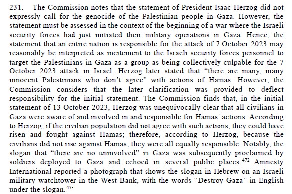 Como puede apreciarse, indica que la ONU ha confirmado el genocidio en Gaza, lo que está bastante lejos de ser cierto, pues se refiere al informe de la COI-OPT, que es una comisión que, como su propio nombre indica, es independiente; esto es, no expresa el parecer de la ONU como organización internacional. Además, hace referencia a un pronunciamiento anterior en el que ya se había dirigido a la comunidad universitaria avanzando que lo de Gaza era un genocidio.