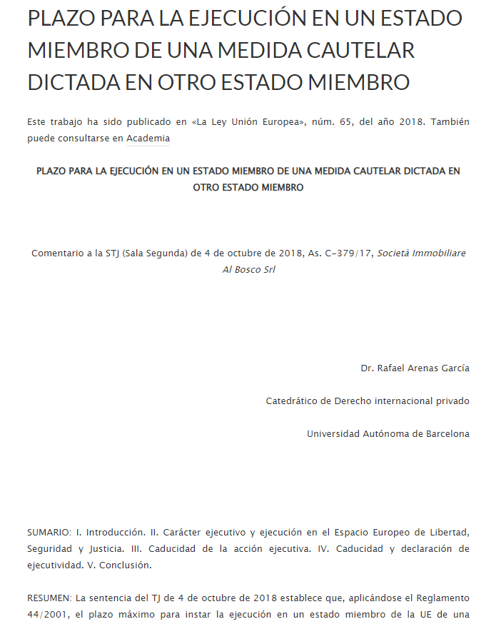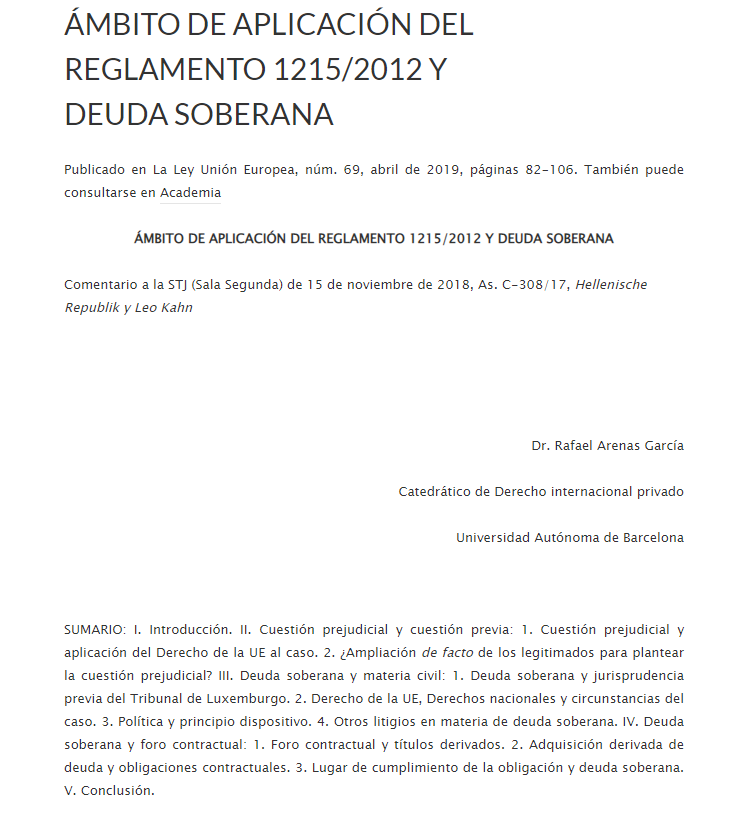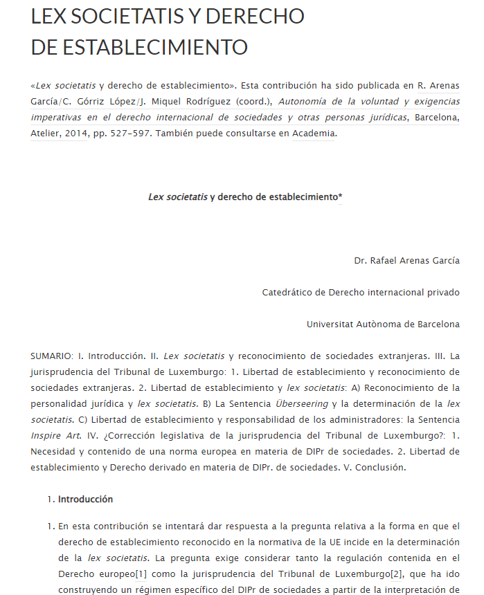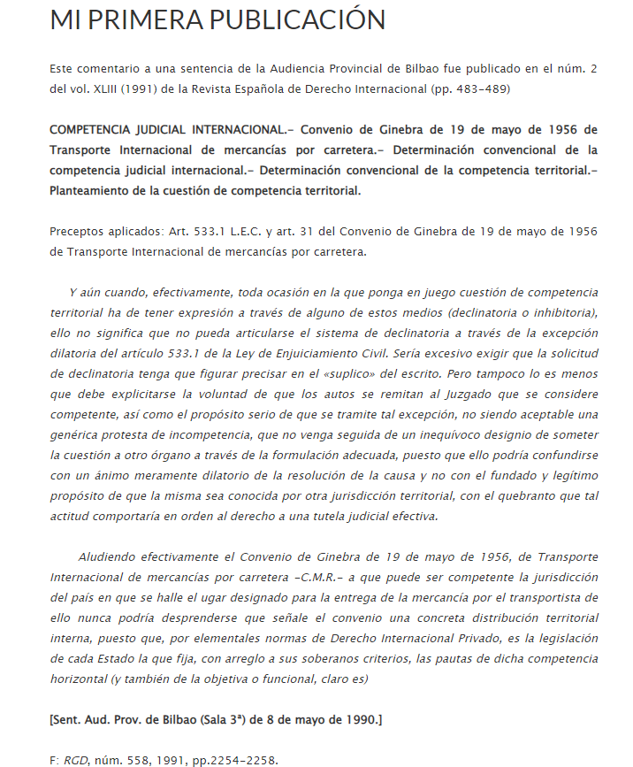 Soy profesor de Derecho internacional privado. Eso implica escribir y publicar. Publique mi primer trabajo en el año 1991 y desde entonces he concluido más de 250 entre libros, capítulos de libro, artículos en revista, reseñas, comentarios de jurisprudencia, traducciones… A veces me cuesta encontrar alguno en concreto. Quizás este blog me ayude a lograrlo.