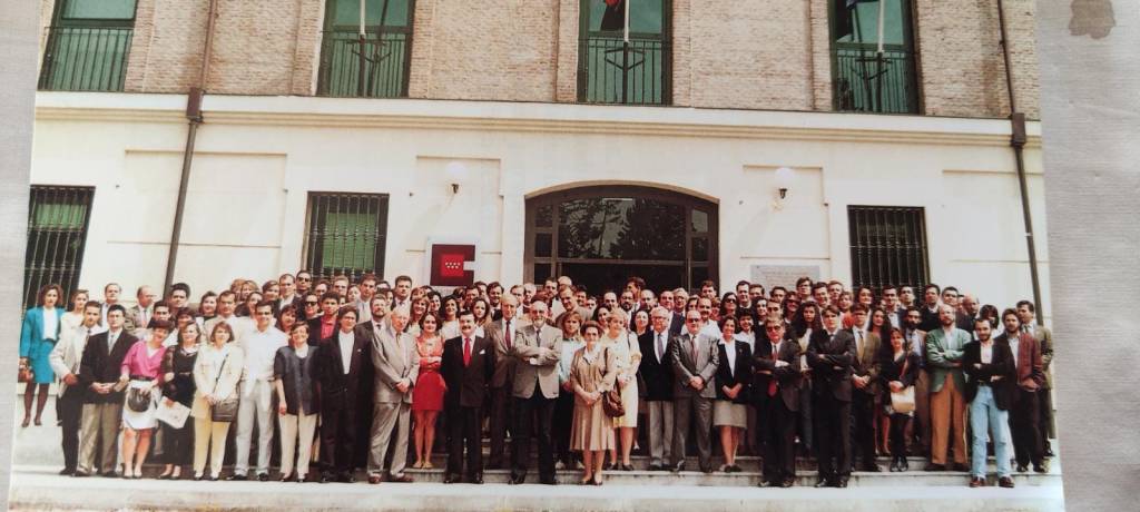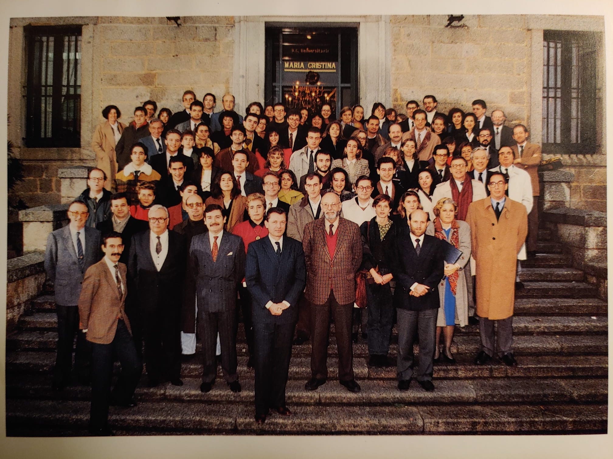 Foto de familia en el Congreso de DIPr de El Escorial, en el año 1991, el primero al que asistí tras mi incorporación al área de Derecho internacional privado. En la primera línea, en el centro, están los profesores Bertrand Ancel y Julio Diego González Campos. También en la primera línea, José Carlos Fernández Rozas, José María Espinar Vicente y Manuel Desantes. En la segunda línea están, entre otros, Blanca Vilà, Sixto Sánchez Lorenzo, Alfonso-Luis Calvo Caravaca, Alegría Borras y el profesor portugués Moura Ramos. Por el medio estoy yo y veo muchas caras conocidas (Pilar Rodríguez, Eloy Gayán, Núria Bouza, Pedro de Miguel, Mónica Guzmán…