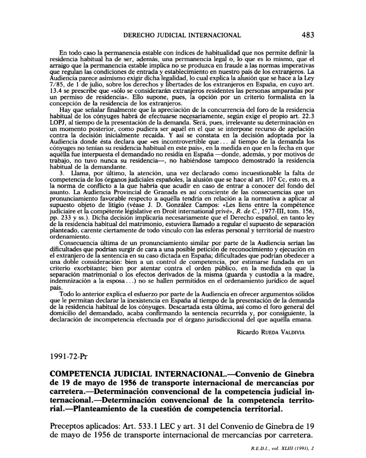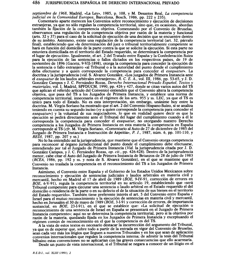 Este comentario a una sentencia de la Audiencia Provincial de Bilbao fue publicado en el núm. 2 del vol. XLIII (1991) de la Revista Española de Derecho Internacional (pp. 483-489)
