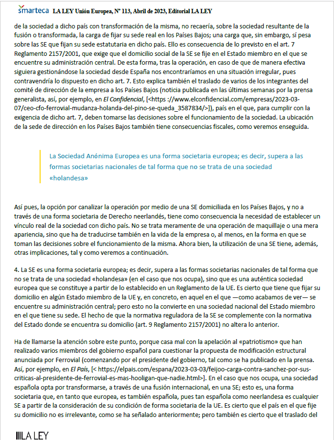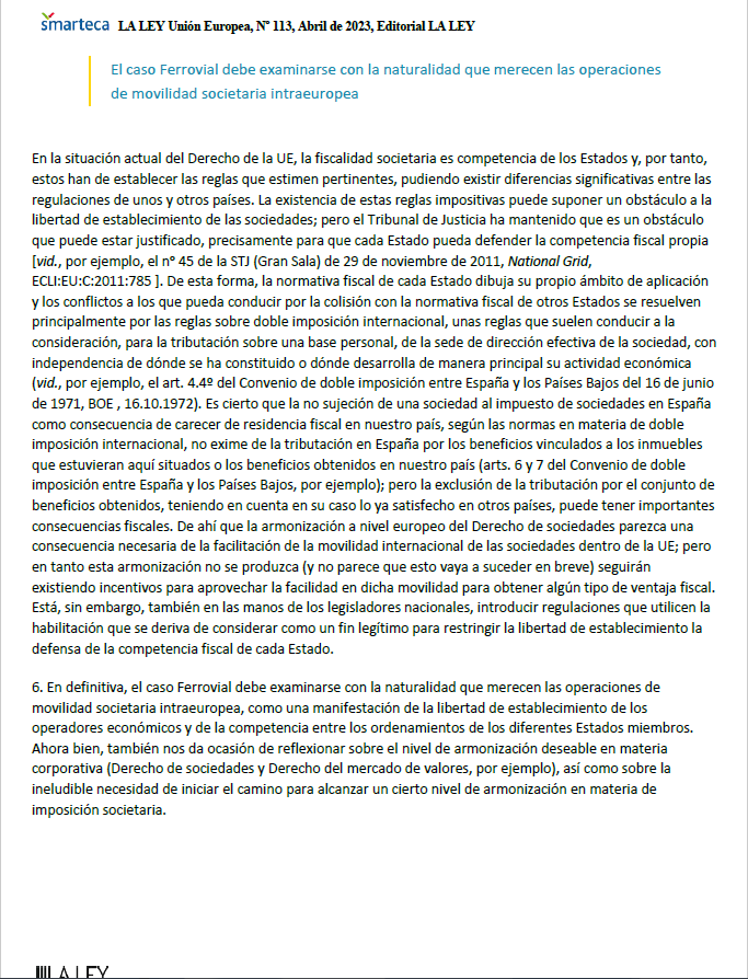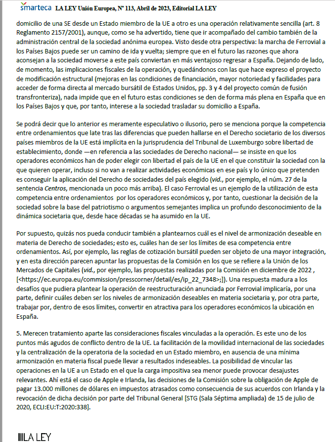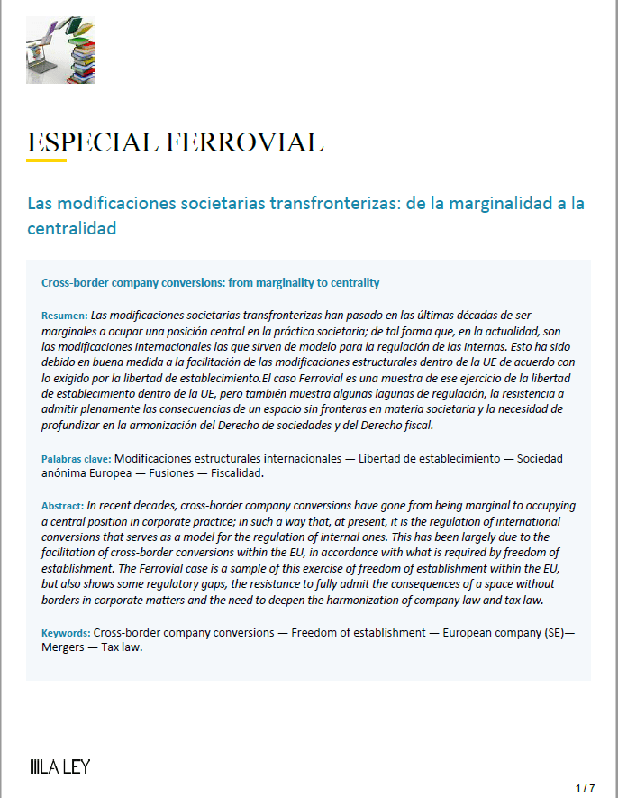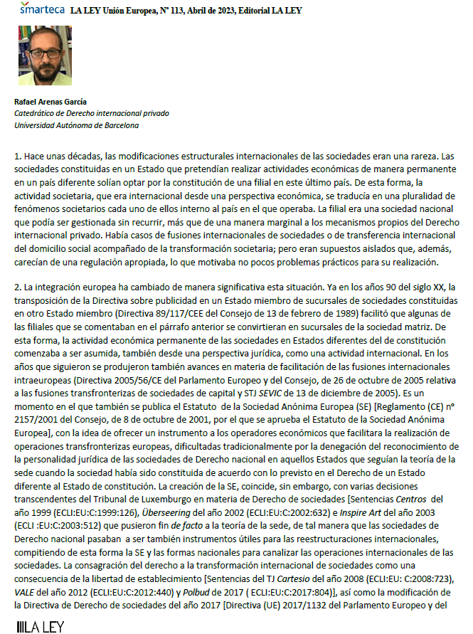 «Las modificaciones societarias transfronterizas: de la marginalidad a la centralidad». Publicado en La Ley Unión Europea, 2023, abril, año XI, núm. 113, pp. 12-18.